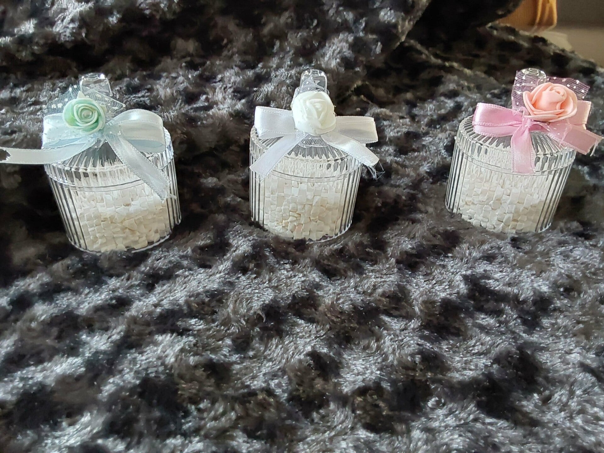 Dieser Gastgeschenk ist mit ca. 100g Dekogranulat oder Badesalz befüllt.